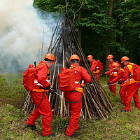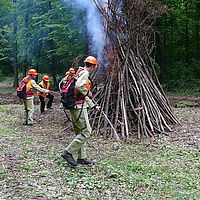 За вигаданою легендою, у лісових угіддях виникла пожежа. За викликом на місце події виїхала державна лісова охорона. для гасіння низової пожежі використали хлопавки, ранцеві лісові вогнегасники, пожежні модулі. Було створено мінералізовану смугу, яка перешкоджає поширенню низової пожежі. Смугу створювали з допомогою трактора МТЗ- 82 з агрегатом ПКЛ-70 та трактора МТЗ- 82 з агрегатом КЛБ- 1,7.
