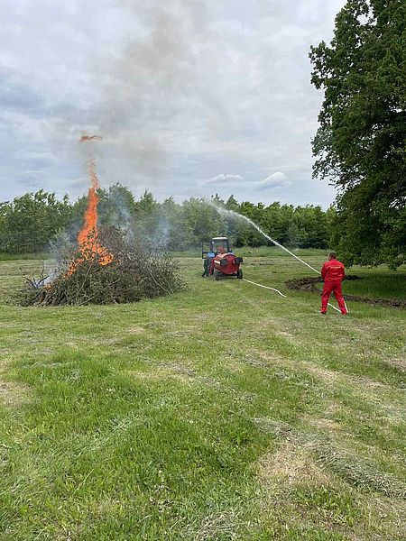 До місця пожежі прибуває державна лісова охорона з ранцевими оприскувачами, розпочинають гасити вогонь. Через кілька хвилин до місця пожежі прибуває техніка Орлівського лісництва для розорювання захисної мінсмуги, яка перешкоджає поширенню низової пожежі. Смугу створювали з допомогою трактора МТЗ- 82 з агрегатом ПКЛ-70 та трактора МТЗ- 82 з агрегатом КЛБ- 1,7.